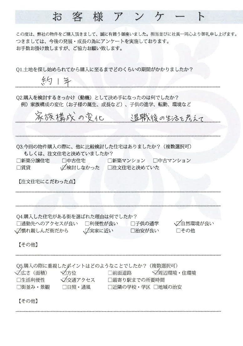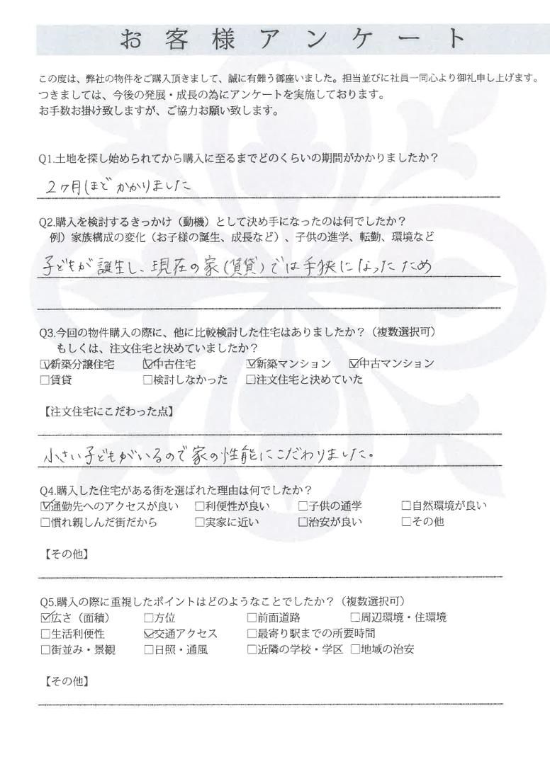 きっかけは交通の利便性、整形地、分譲地等 環境面 立川市 S様 2022年