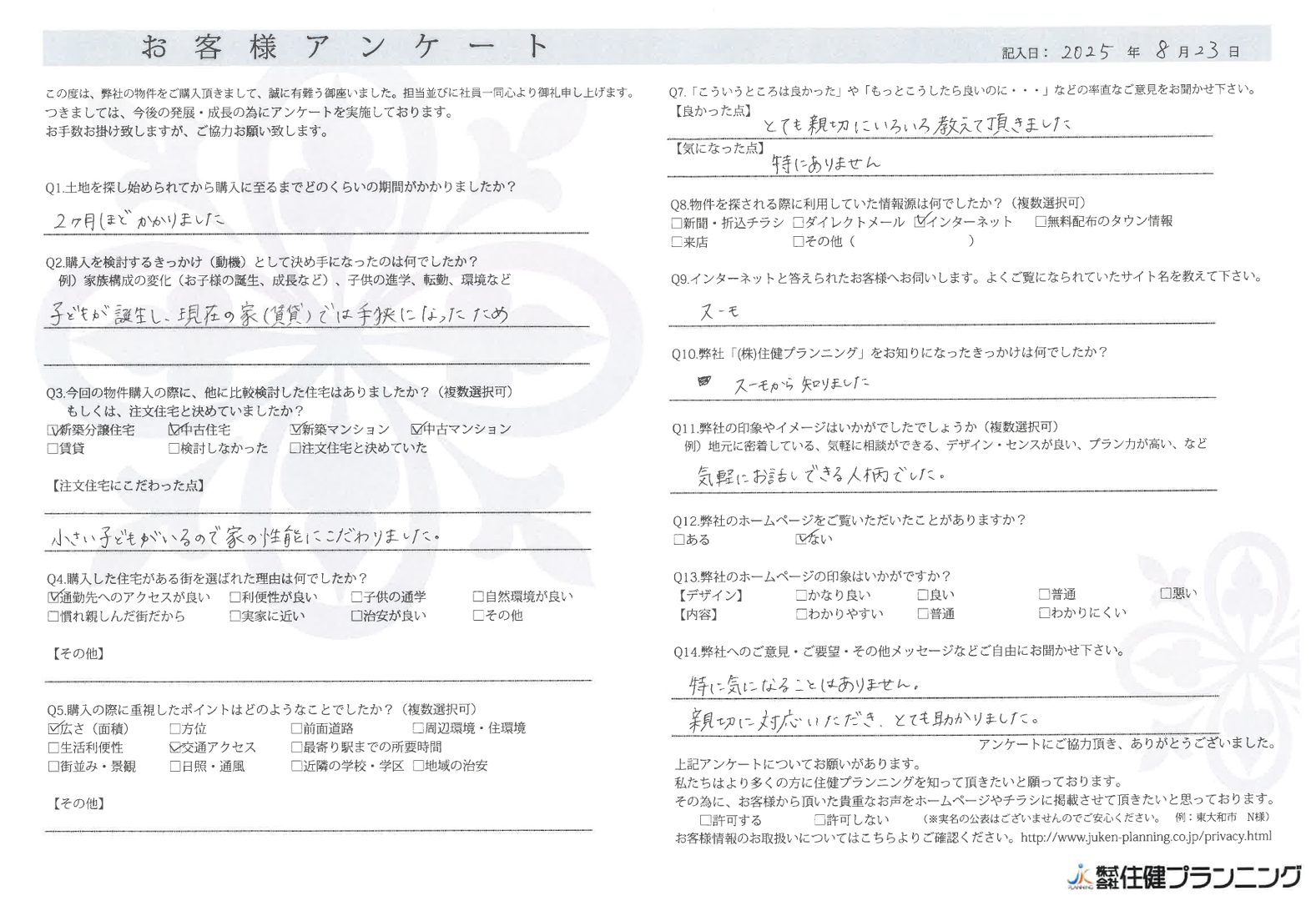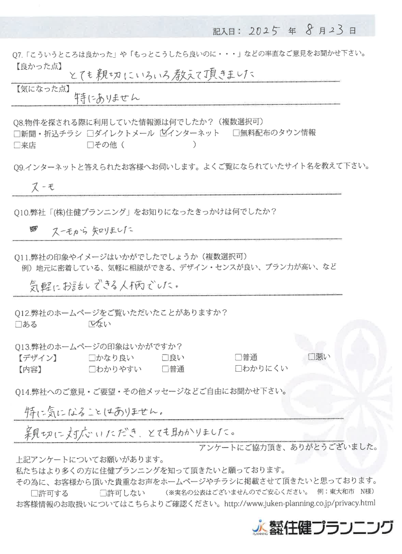 地元に密着しているので、相談しやすい 東村山市 T様2025年