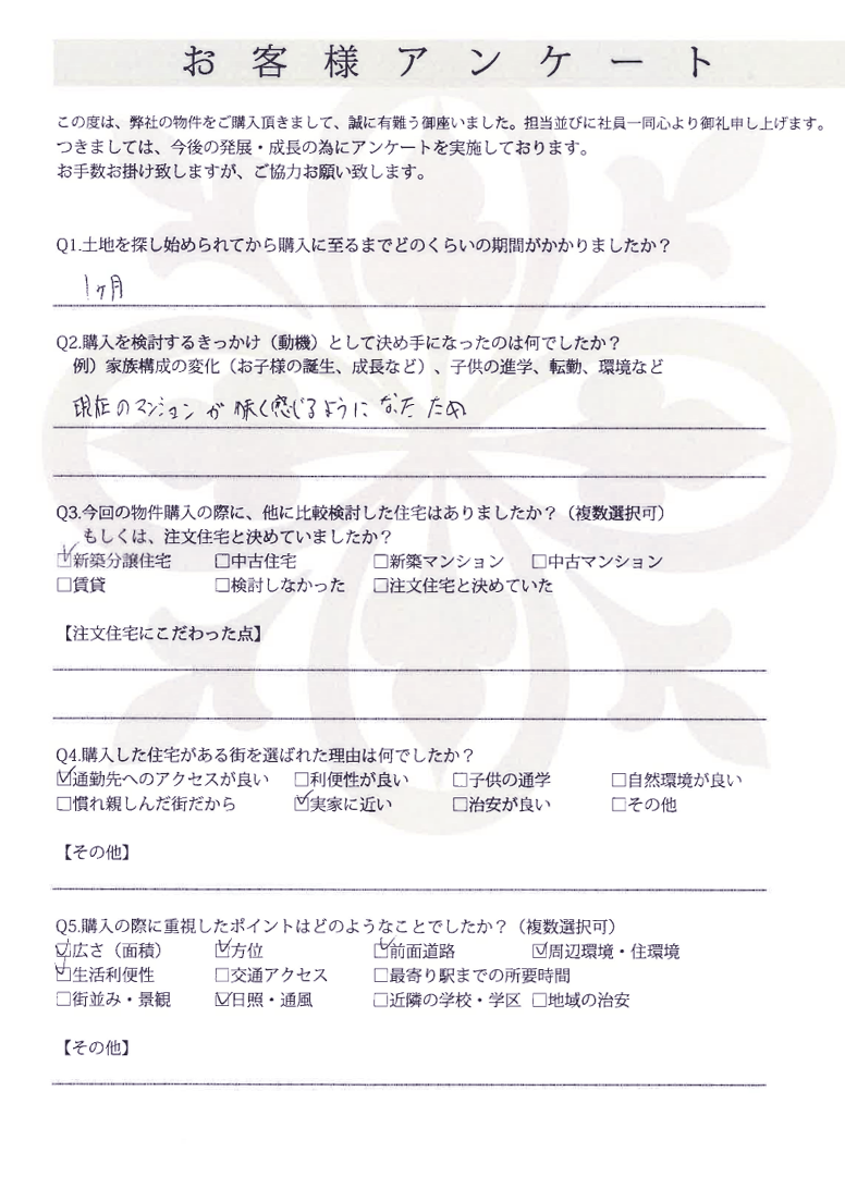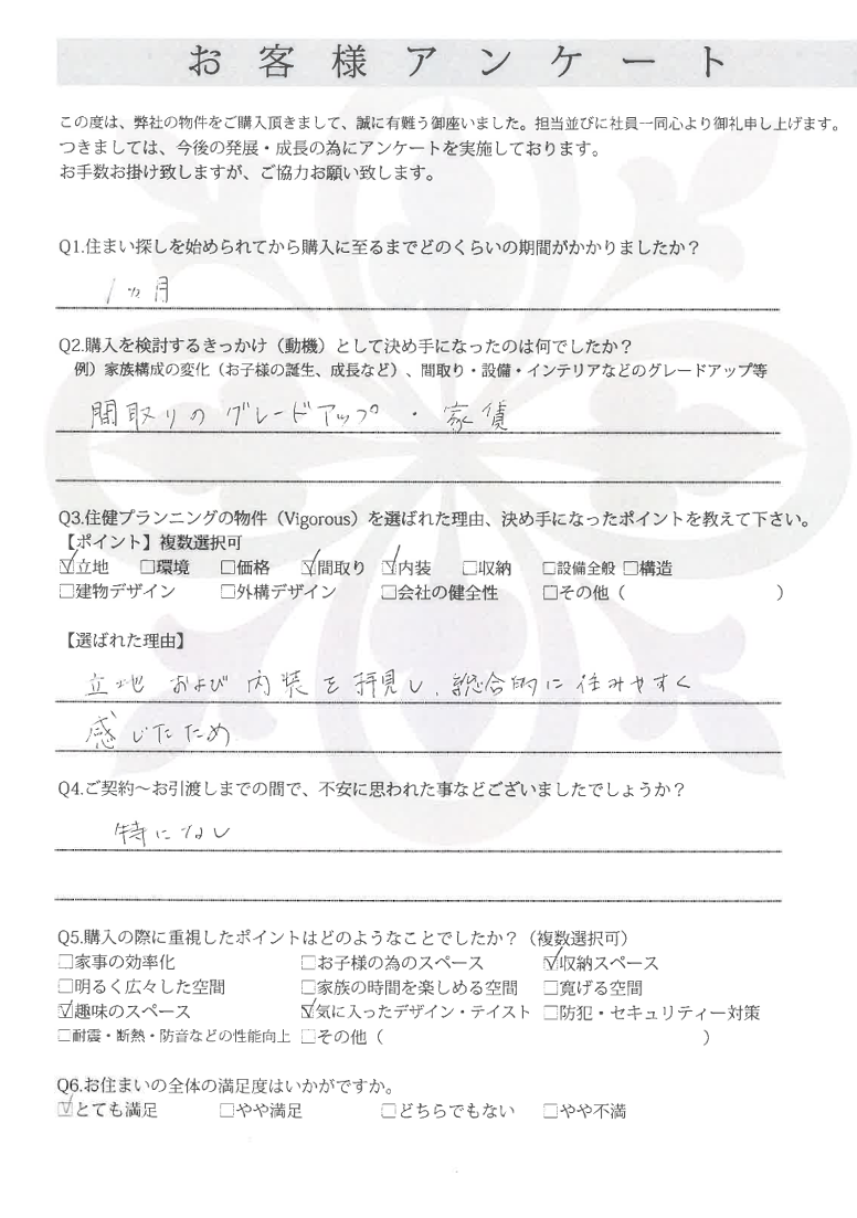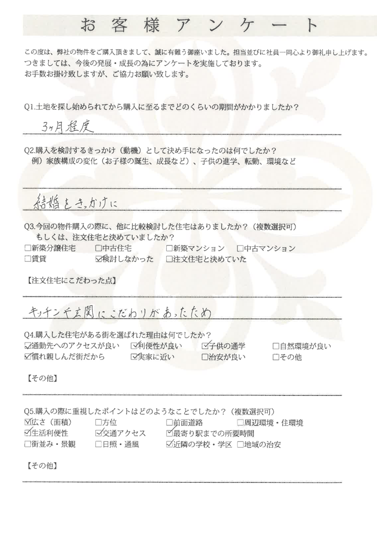 駅徒歩3分という好立地で間取り・内装が気に入りました。 小平市 Y様 2021年
