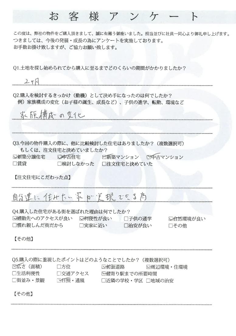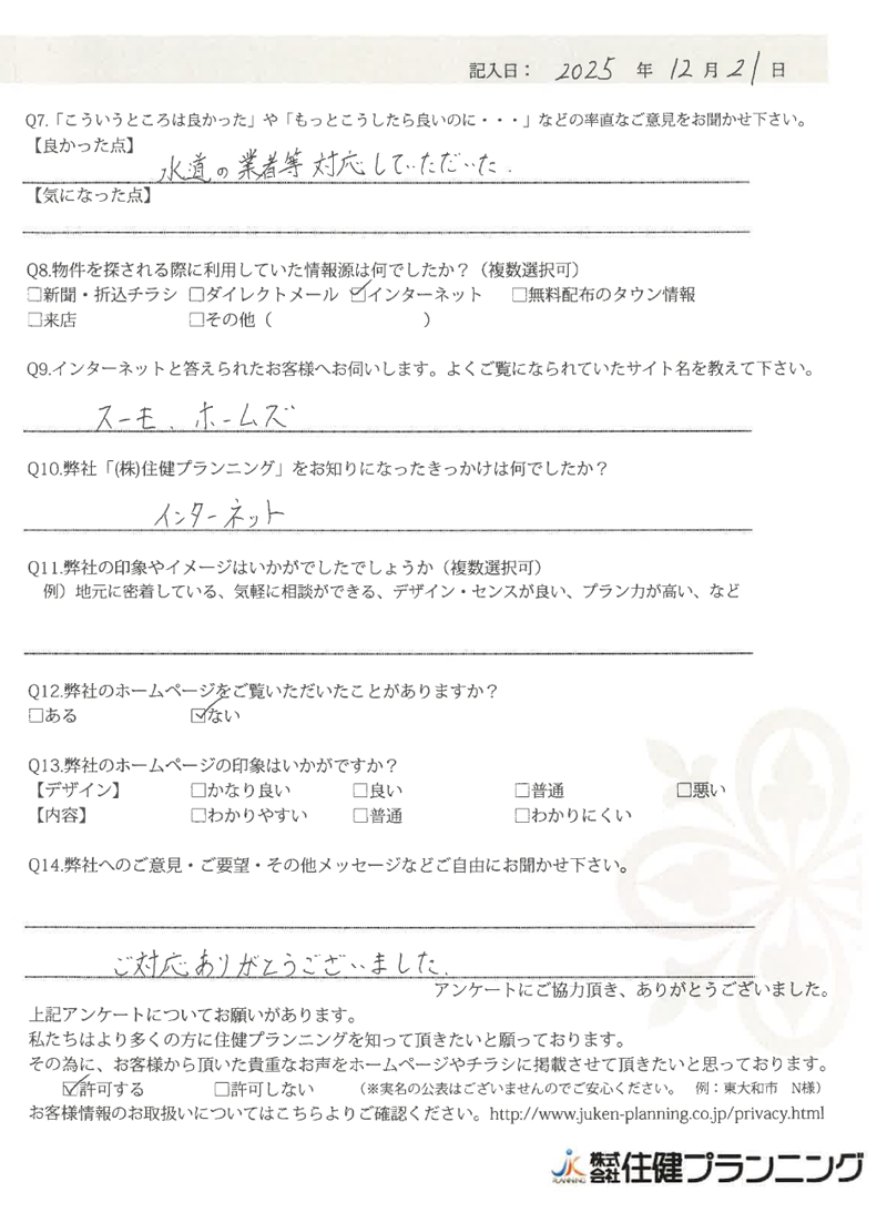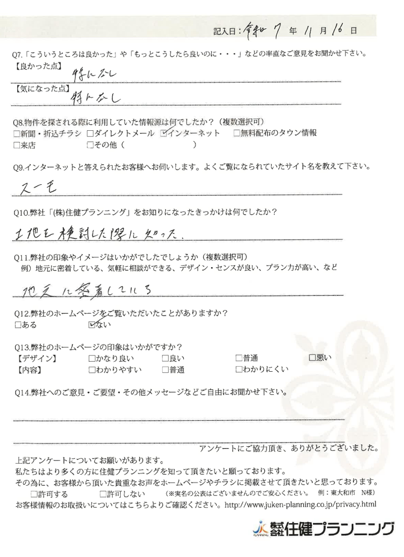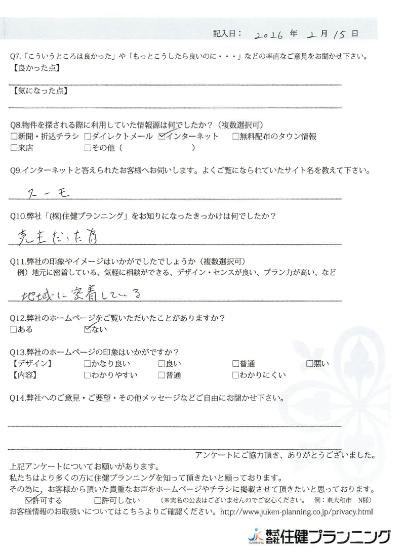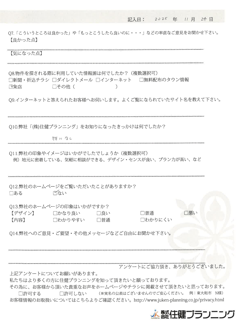 ていねいにご対応いただき、ありがとうございました。 小平市 O様 2022年