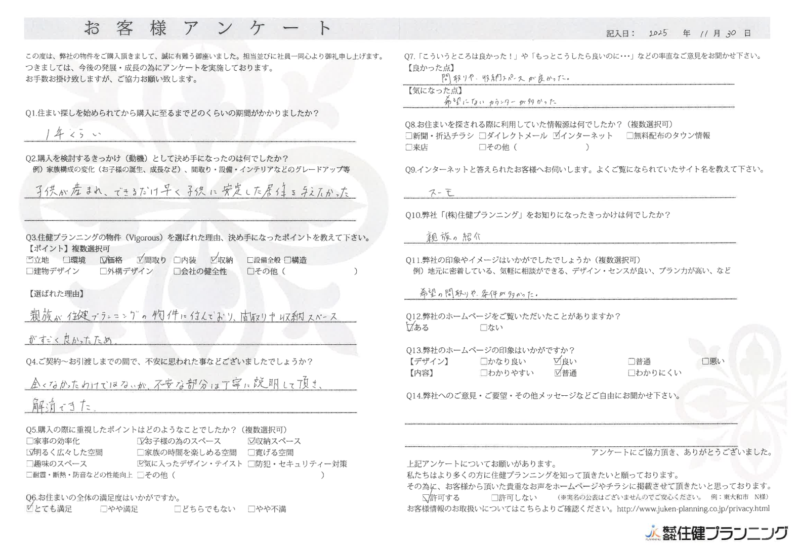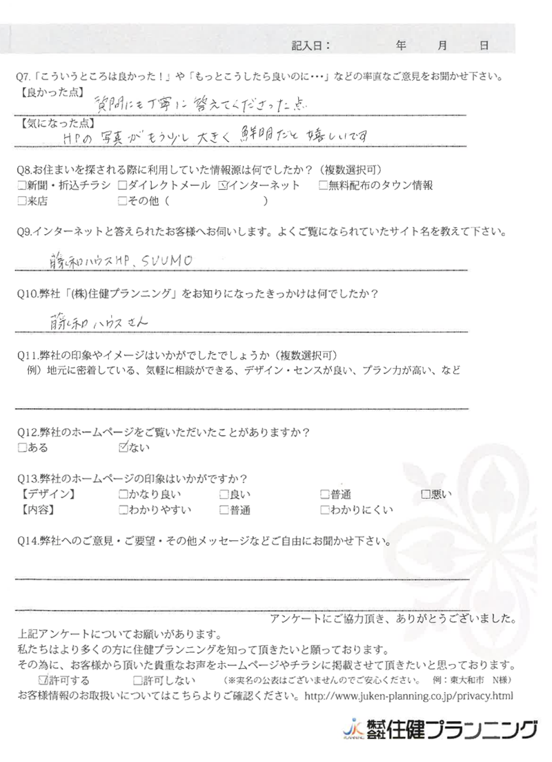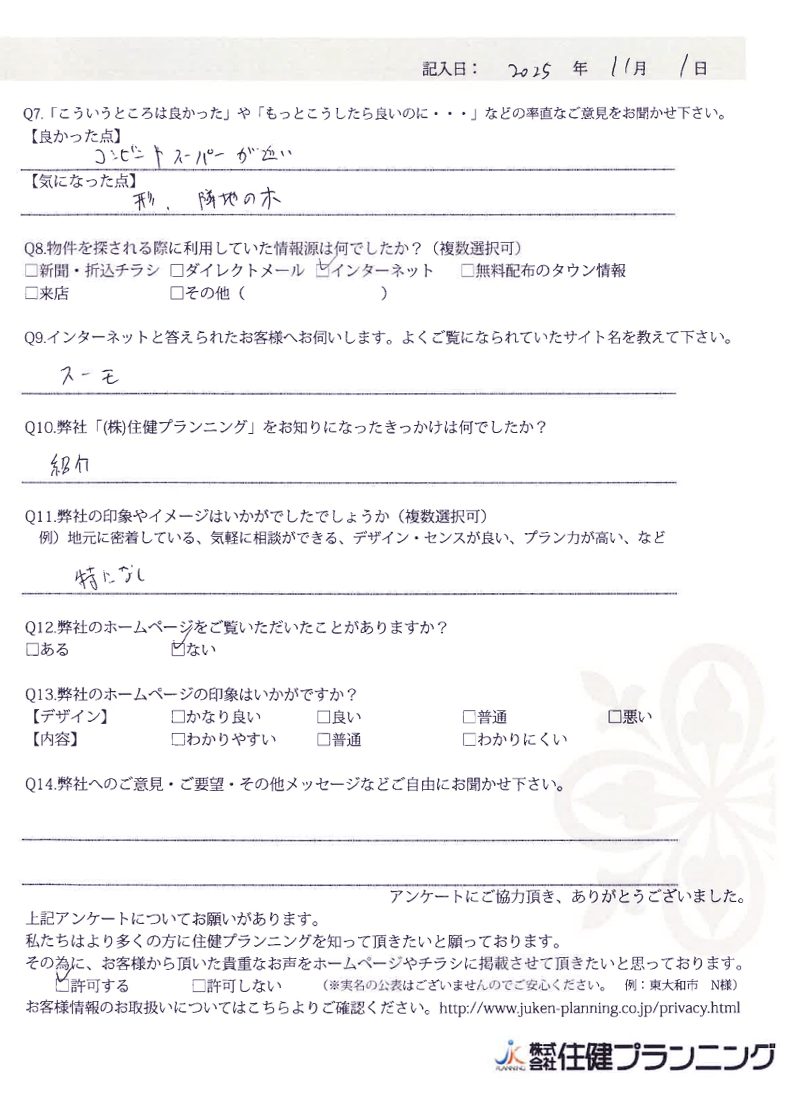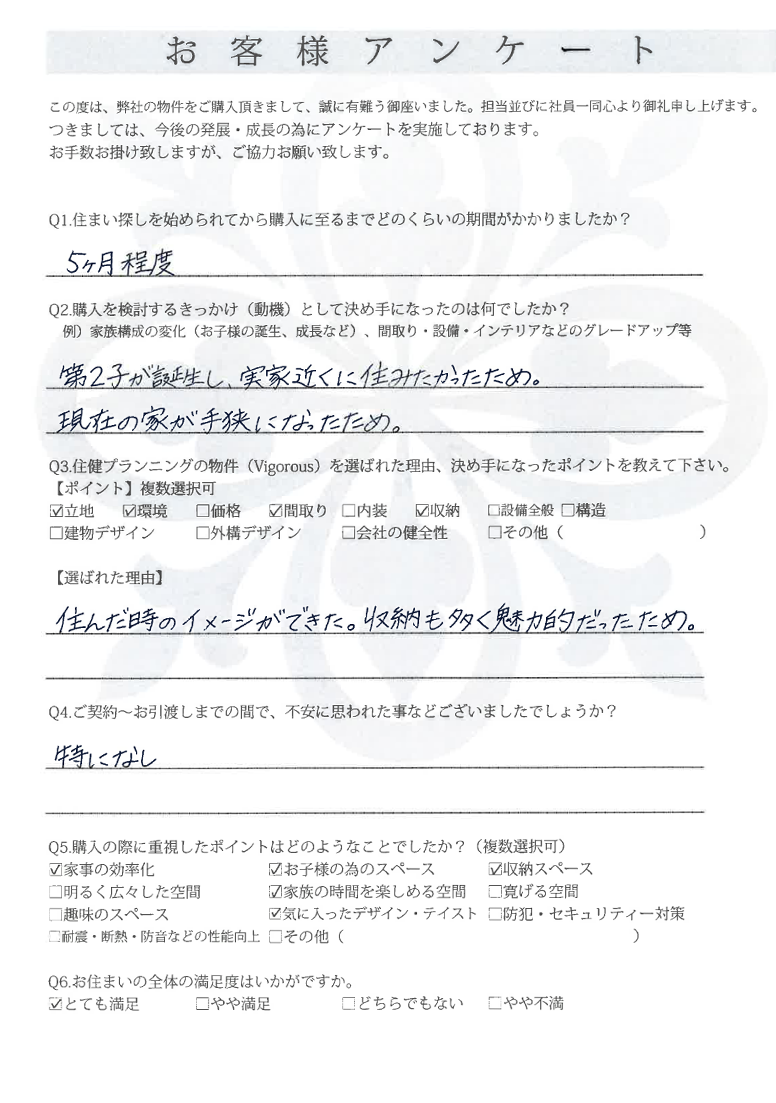 ていねいにご対応いただき、ありがとうございました。 小平市 O様 2022年