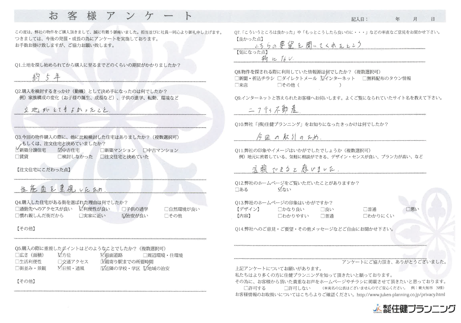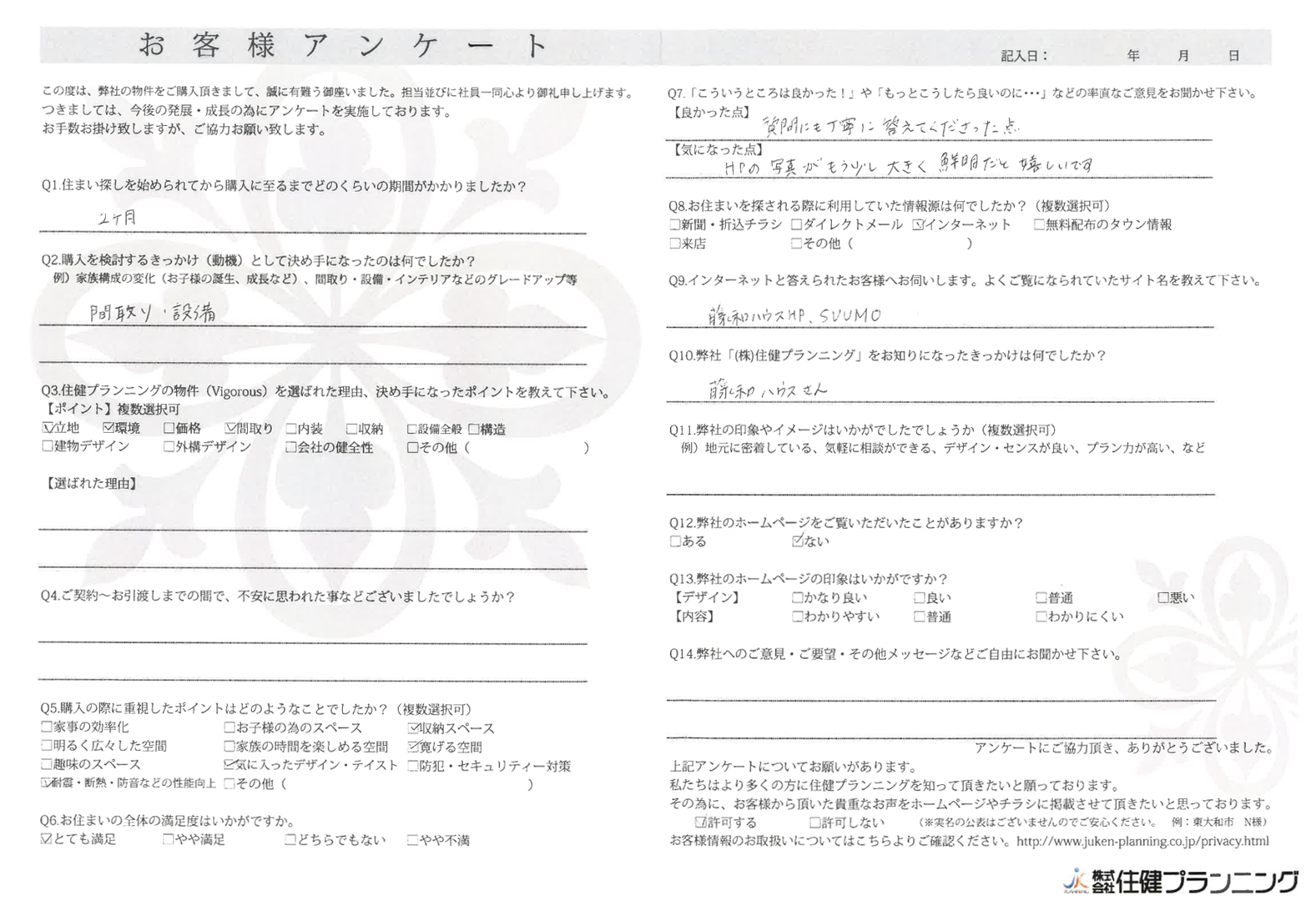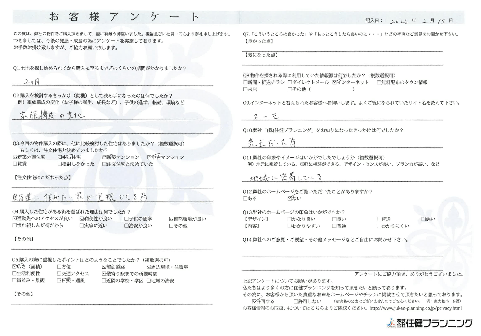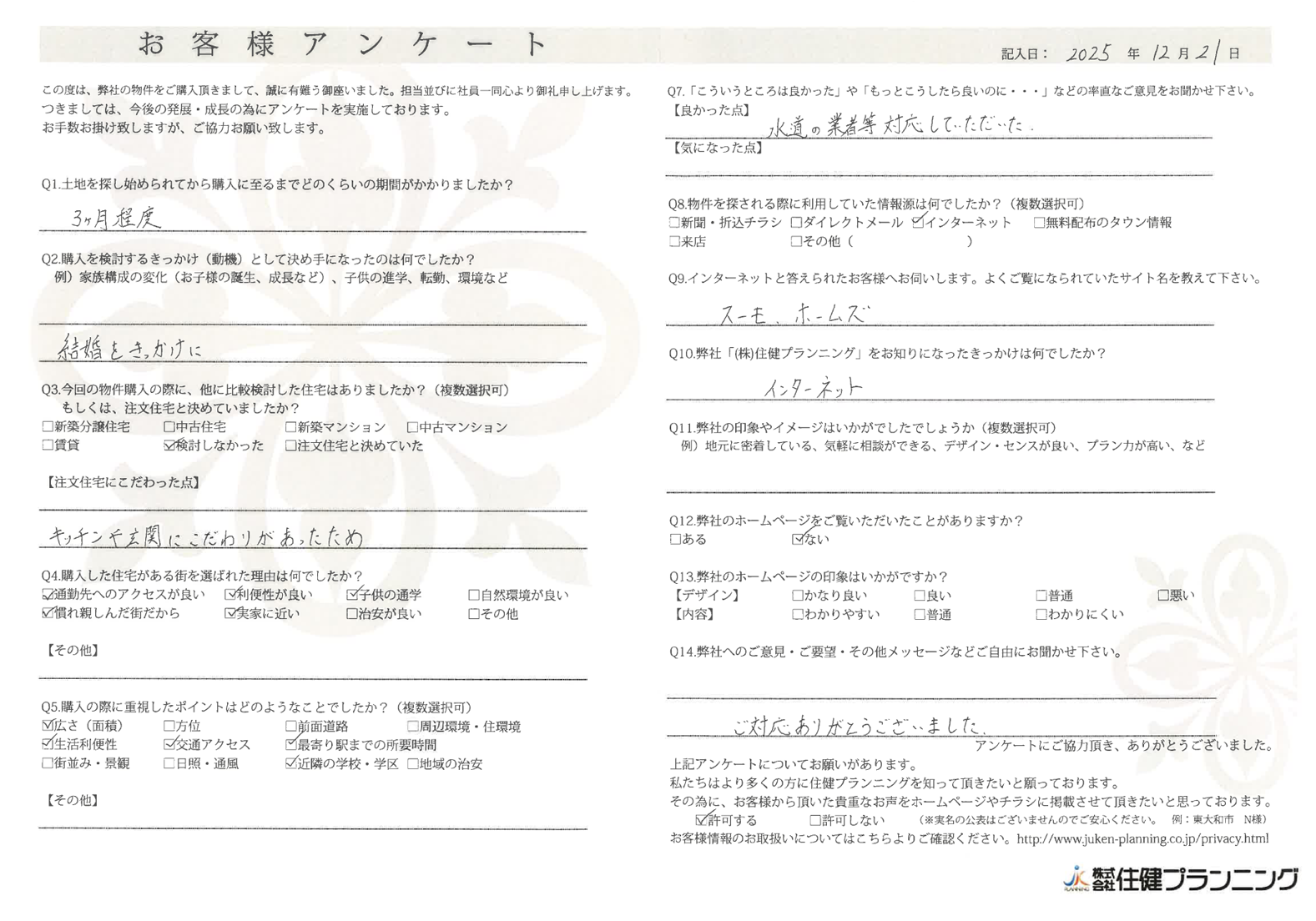ていねいにご対応いただき、ありがとうございました。 小平市 O様 2022年