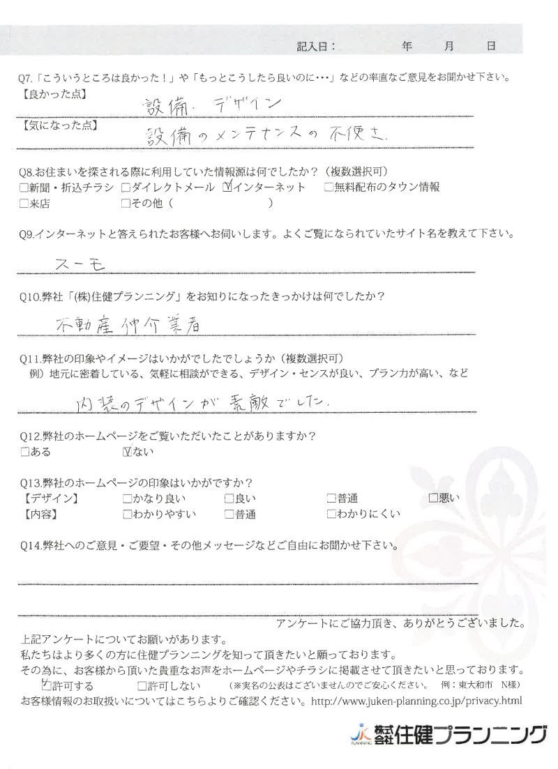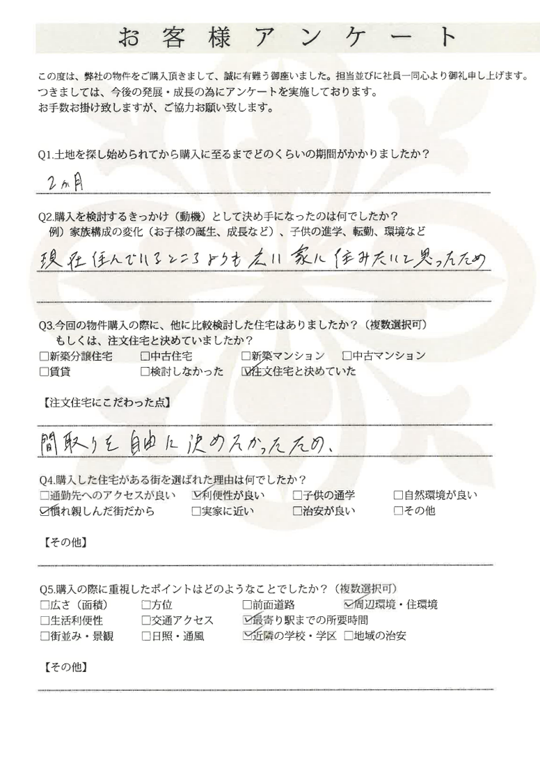 デザイン性と生活スタイルに合っていたところ 東大和市 N様 2021年