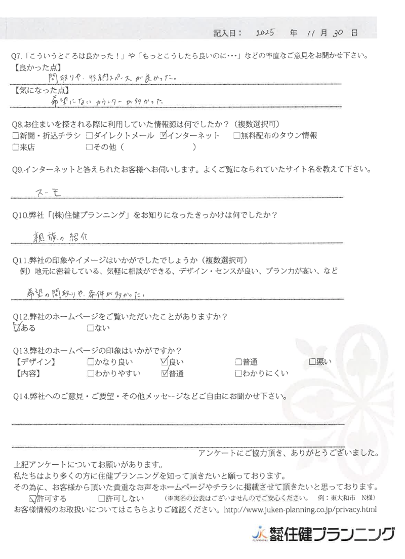 家作りにこだわりがあり、デザイン・設備が良い。 小平市 M様 2021年