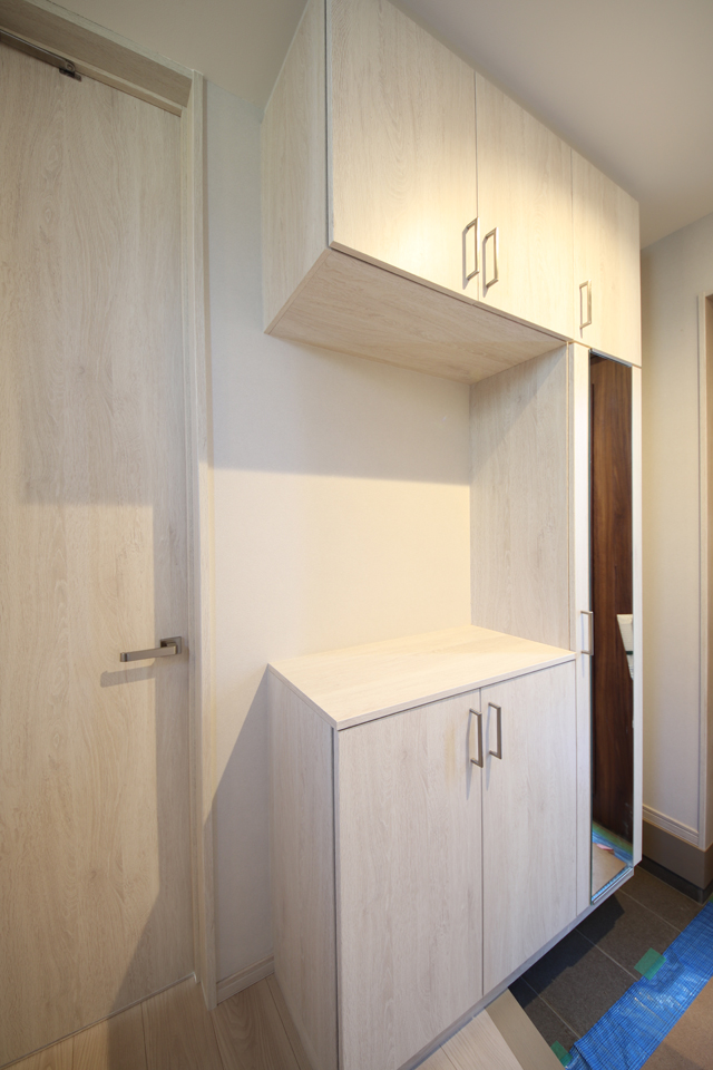 ご家族だけではなく来客の際も気兼ねなくお使い頂ける手洗い器を玄関から近い距離に設置。外から持ち込んだ汚れや細菌を家の中に入れることなく、感染リスクを減らすことができます。また、玄関で身なりを整えることもできます。