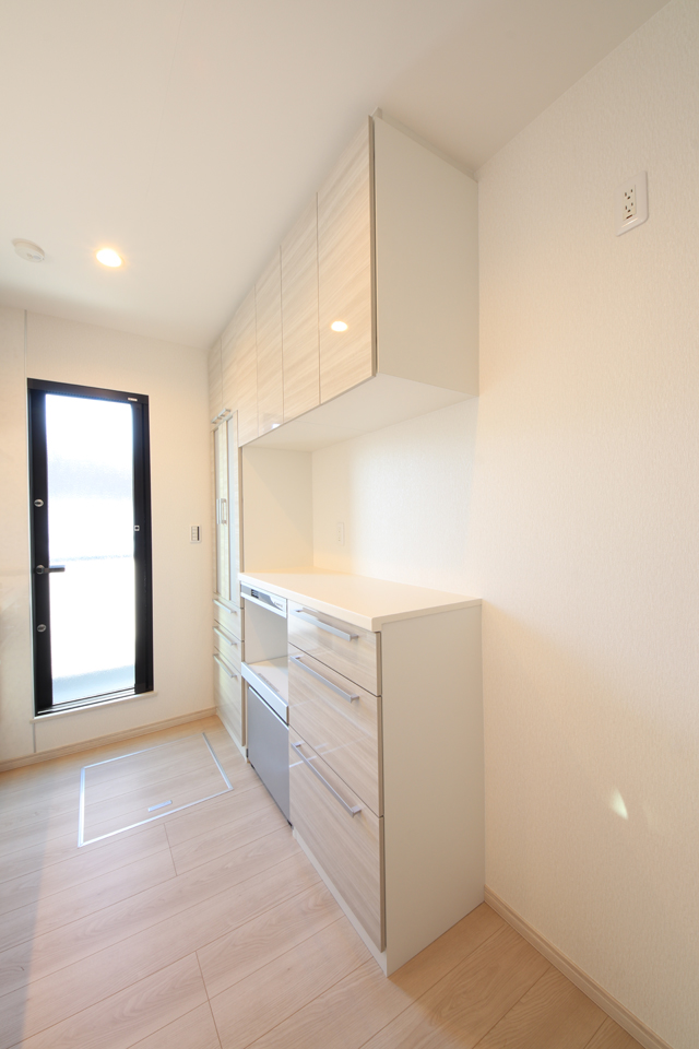 朝の忙しい時間帯でもカウンターがあれば、パウダールームとしてご家族が同時に洗顔や歯磨きを行っても、広々としたスペースがあるので、快適に使うことができます。またアイロンがけや洗濯物の作業をこなすスペースとして家事ラク空間としてもお使いいただけます。